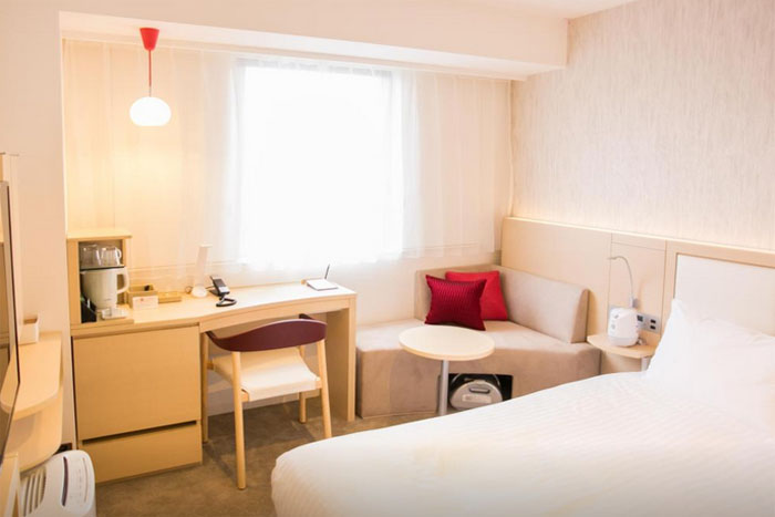 ที่พักเหมาะกับสายประหยัด ราคาเริ่มต้นพันกว่าบาทเท่านั้น ขนาดห้อง 14 ตารางเมตร ถือว่าไม่แคบเลยกับราคาเท่านี้ เคล็ดลับการจองให้ได้ราคาถูกคือจองล่วงหน้านานๆ โรงแรมมีอาหารเช้าแบบญี่ปุ่น ถ้าออกเที่ยวแต่เช้าแนะนำให้จองห้องแบบไม่รวมอาหารเช้า ห้องพักสะอาด สามารถฝากกระเป๋าข้ามวันได้ กรณีกลับมาพักใหม่ (มีค่าใช้จ่าย) โรงแรมมีเครื่องซักผ้า อบผ้าหยอดเหรียญ และเครื่องจำหน่ายเครื่องดื่มอัตโนมัติ