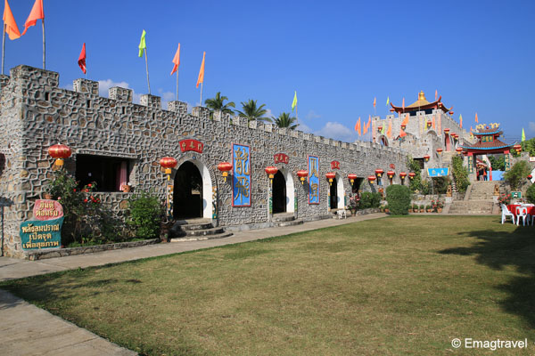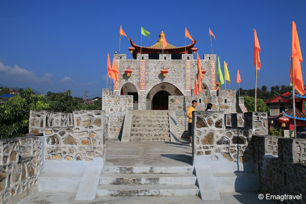 เมื่อเดินเข้าไปด้านในสุด มีอาคารคล้ายกำแพงเมืองจีน ด้านล่างจำหน่ายชา ด้านบนเป็นจุดชมวิว