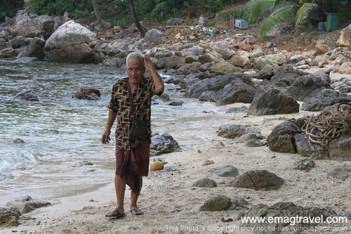บรรยากาศบนเกาะ ตอนนี้นักท่องเที่ยวกลับกันหมดแล้ว เกาะเงียบมาก เหมือนเป็นเกาะส่วนตัวของเรา ที่เห็นชายเสื้อน้ำเงินคือพี่บัวลอย กัปตันเรือของเรานั่นเอง