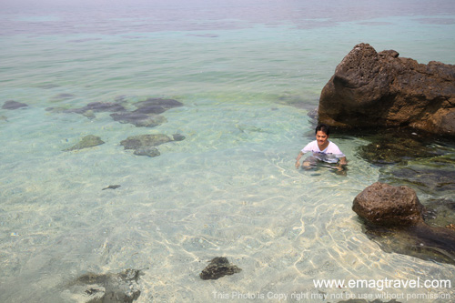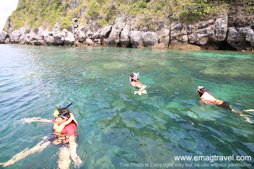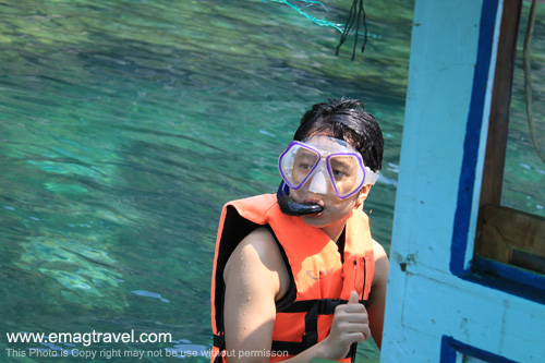 เราก็ดำน้ำกันแถวๆ นี้แหล่ะครับ ในเรือจะมีชูชีพหน้ากากดำน้ำ แบบ Snorkel ใครที่ว่ายน้ำไม่เป็นก็ดำได้ครับ ใส่ชูชีพไว้ ยังไงก็ไม่จม