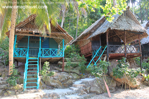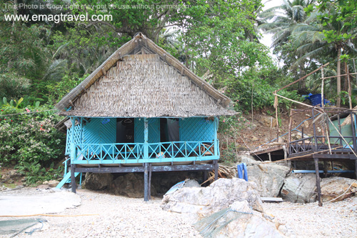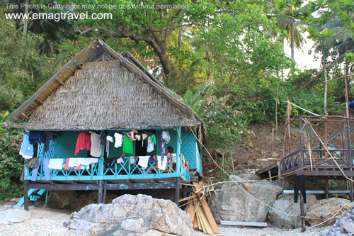 บ้านของชาวเกาะ สร้างขึ้นอย่างง่ายๆ โครงไม้ไผ่ และหลังคามุงจาก เกาะนี้เป็นหนึ่งในเกาะที่มีสัมปทานรังนกนางแอ่น คนที่อยู่เกาะก็จะเป็นคนเฝ้ารังนกนางแอ่นด้วย