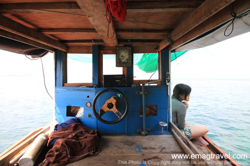 แอบมาดูท้ายเรือ ห้องกัปตันเรือซะหน่อย มีพวงมาลัย คันเร่ง และวิทยุทรานซิสเตอร์ธานินท์ เสียงชัดแม้อยู่กลางทะเล แอบสงสัยอยู่ว่าเวลาอยู่กลางทะเลเค้ารู้ได้ไงว่าอยู่ตรงไหน