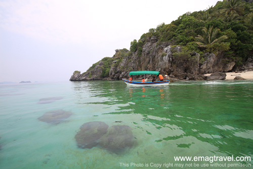 เรือแล่นช้าๆ เรื่อยๆ ประมาณ 1 ชั่วโมงเราก็มาถึง เกาะมาตรา หนึ่งในหมู่เกาะชุมพร พอลงจากเรือผมรู้ว่าผมพลาดแล้ว พลาดที่ใส่กางเกงยีนส์ขายาวมา ถึงจะพับขาขึ้นไปแล้วก็ยังเปียกอยู่ดี