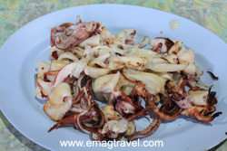 มาถึงก็กินข้าวกันก่อนเลย กับข้าวก็มีหมึกทอดกระเทียม, ปลาทอด, ผัดกระเพราหมึก ตบท้ายด้วยแตงโม อร่อยมากๆ ครับ