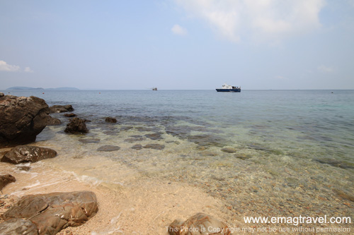 ที่เกาะมาตราจะมีหาดสั้นๆ อยู่ พอเล่นน้ำได้ครับ แต่มีหินค่อนข้างเยอะเหมือนกัน น้ำใสใช้ได้เลย เสียดายว่าวันที่ไป ฟ้าไม่เปิด แดดไม่แรง เลยดูหม่นๆ ไปหน่อย