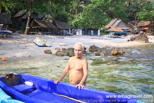 ลุงขาวผู้เป็นเจ้าของเกาะเดินมาต้อนรับเรา