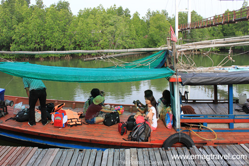 เราเดินมาถึงทางออกไปทะเล มีเรือมารอเราแล้วครับ เป็นเรือประมงแบบทั่วไปนี่แหล่ะครับ น่าจะโดยสารได้ประมาณ 10 คนกว่าๆ คนขับชื่อพี่บัวลอย
