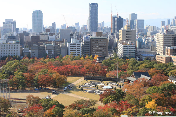 วิวจากชั้นบนสุดของปราสาทโอซาก้า
