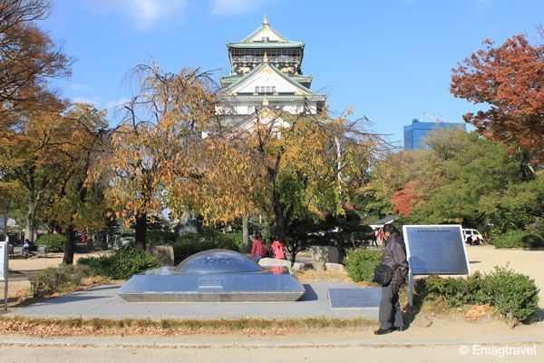 ที่ด้านหน้าปราสาท เป็นพื้นที่ของ Expo ‘70 Time Capsule เป็นแคปซูลที่ใส่สิ่งของในปีค.ศ. 1970 ลงไป สมัยที่โอซาก้าเป็นเจ้าภาพจัดงาน และจะมีการเปิดแคปซูลอีกครั้งในอีก 5,000 ปีข้างหน้า
