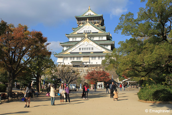 ปราสาทโอซาก้า (Osaka Castle 大坂城) เป็นหนึ่งในสัญลักษณ์ของเมืองโอซาก้า สร้างขึ้นในปี ค.ศ. 1583 โดยนักรบไดเมียว นามว่าโทโยโทมิ ฮิเดโยชิ Toyotomi Hideyoshi โดยตั้งใจว่าให้ปราสาทนี้เป็นศูนย์รวมการปกครอง มีการใช้แรงงานคนนับหมื่นคนในการสร้างปราสาท ใช้เวลาสร้างเพียง 3 ปีเท่านั้น ต่อมาตระกูล Toyotomi ถูกฆ่าล้างโครตโดยโชกุน Tokugawa Ieyasu ตัวปราสาทก็ถูกทำลาย แต่ก็มีการบูรณะใหม่ในสมัยโชกุน Tokugawa Hidetada (ลูกของ Ieyasu) เป็นการก่อสร้างปราสาทโอซาก้าครั้งที่ 2 การบูรณะเสร็จสมบูรณ์ในปี ค.ศ. 1629