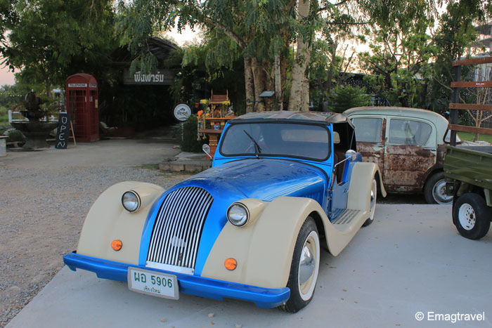 ที่หน้าร้านมีสนามหญ้า รถคลาสสิค และ อุโมงค์ เป็นจุดถ่ายรูปของร้าน แอบเสียดายฝุ่นจับรถเยอะไปหน่อย วันที่ไปอุโมงค์ปลูกต้นกาแฟ และมีหมอกพ่น พอให้รู้สึกชุ่มชื้น
