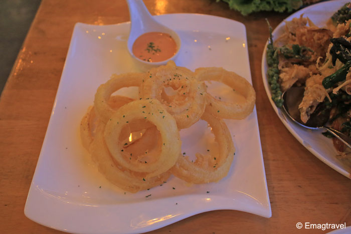 จานสุดท้าย อันเนียน ริง มาหลังอาหารทุกชนิด กะว่าถ้าไม่มาจะไม่ตาม เพราะเริ่มจะอิ่มแล้ว รสชาติเหมือนทานในร้าน Pizza อร่อยดี น้ำจิ้มก็เข้ากันดี