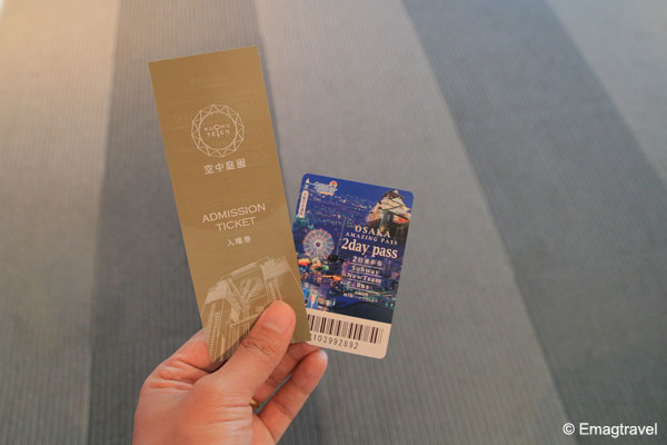 การจะขึ้นไปยังดาดฟ้า (Rooftop) นั้นจะต้องขึ้นบันไดเลื่อนที่ชั้น 35 ความรู้สึกจะเหมือนว่าบันไดเลื่อนอยู่กลางอากาศ มองซ้าย – ขวา จะเห็นวิวได้ชัด ดูเสียวเล็กน้อยสำหรับผู้กลัวความสูง ปลายทางของบันไดเลื่อนจะอยู่ที่ชั้น 39 จากนั้นก็จะเจอที่จำหน่ายบัตรเข้าชม ผู้ที่มีบัตร Osaka Amazing Pass สามารถชมวิวที่ตึก Umeda Sky Building ได้ฟรี เพียงยื่นบัตรให้เจ้าหน้าที่สแกนบาร์โค๊ด