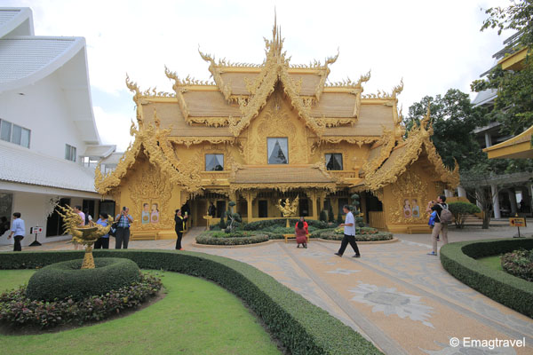 สิ่งก่อสร้างที่โดดเด่นรองจากพระอุโบสถสีขาวก็จะเป็นอาคารห้องน้ำสีทอง ตกแต่งด้วยสีทองตั้งแต่หลังคาจนถึงตัวอาคาร เป็นที่ชื่นชอบของนักท่องเที่ยว โดยเฉพาะชาวจีน