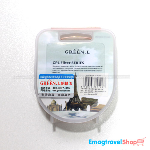 CPL Filter ยี่ห้อ GREEN.L ผู้ผลิตฟิลเตอร์รายใหญ่ ช่วยเพิ่มสีท้องฟ้าให้สดใสยิ่งขึ้น ตัดแสงที่มากระทบผิวน้ำ และกระจก ทำให้ภาพชัดมากขึ้น