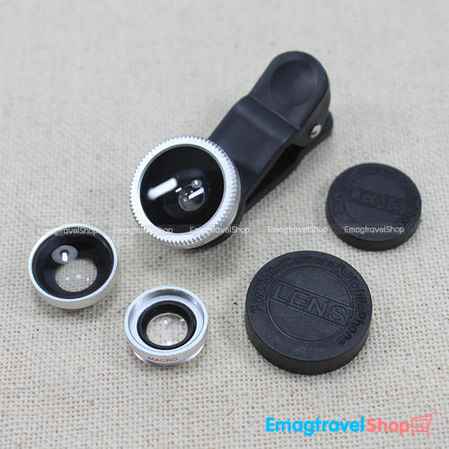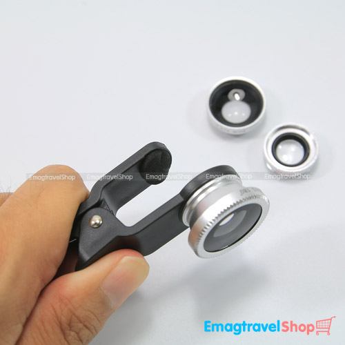 Universal Clip Lens 3 in 1 เลนส์โทรศัพท์มือถือ เพิ่มมุมมองใหม่ให้กับการถ่ายรูปด้วยกล้องโทรศัพท์มือถือ ใช้ได้กับโทรศัพท์เกือบทุกรุ่น เช่น iPhone, Samsung (ไม่สามารถใช้ได้กับโทรศัพท์ที่มีกล้องอยู่กึ่งกลาง เช่นตระกูล Lumia) วิธีใช้เพียงหนีบคลิปเลนส์ครอบกล้องที่โทรศัพท์มือถือ หนีบง่าย ถอดเก็บสะดวก ตัวคลิปเลนส์มียางรอง ไม่ทำให้โทรศัพท์เป็นรอย