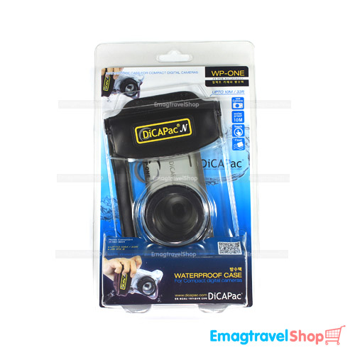 ซองกันน้ำกล้องคอมแพค (Waterproof case) ยี่ห้อไดคาแพค DiCAPac WP-ONE แบรนด์ยอดนิยมสำหรับช่างภาพใต้น้ำระดับมืออาชีพ สินค้าผลิตที่ประเทศเกาหลี งานคุณภาพสูง ได้รับการทดสอบการกันน้ำตามมาตราฐานญี่ปุ่น JIS IPX8 (Japaness Industrial Standard's highest waterproof grade) ผ่านการทดสอบทั้งใน Lab และสถานที่จริง กันน้ำได้ลึก 33 ft หรือ 10 เมตร กันน้ำได้จริง 100% เมื่อทำตกน้ำจะลอยขึ้นมาเอง ไม่ต้องกลัวหล่นหายใต้น้ำ