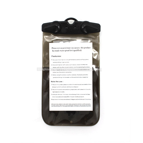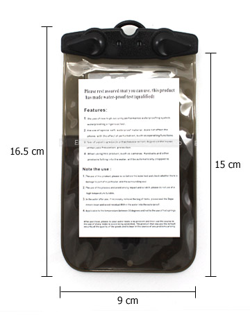 - ก่อนใช้งานควรทำสอบการกันน้ำด้วยการใส่กระดาษทิชชู่ไว้ด้านในซองปิดซิป ล๊อคให้แน่นแล้วทำการจุ่มน้ำขั้นต่ำ 1 ชั่วโมงหรือมากกว่านั้น หลังจากการทดสอบจะต้องไม่มีน้ำเข้าไปด้านใน
