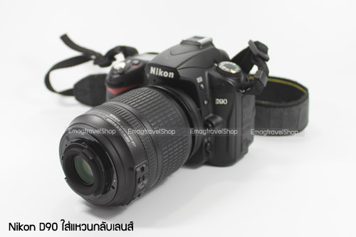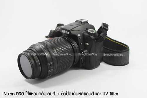Nikon D90 ใส่แหวนกลับเลนส์ + ตัวป้องกันหลังเลนส์ และ UV Filter (อุปกรณ์เสริมต้องซื้อเพิ่ม)