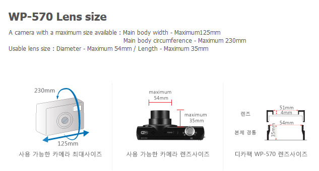 ซองกันน้ำไดคาแพค DiCAPac WP-570 สำหรับกล้องคอมแพครุ่นใหญ่ รุ่นโปรฯ คอมแพค Hi-end หลายรุ่น เช่น Panasonic, Sony, Nikon, Canon G15, G16 เหมาะสำหรับใช้ดำน้ำ สน๊อกเกิ้ล ถ่ายภาพใต้น้ำ กันน้ำได้ 100% ผ่านการทดสอบการกันน้ำตามมาตราฐานญี่ปุ่น JIS IPX8 (Japaness Industrial Standard's highest waterproof grade) ผ่านการทดสอบทั้งใน Lab และสถานที่จริง กันน้ำได้ลึก 33 ft หรือ 10 เมตร กันน้ำได้จริง 100% เมื่อทำตกน้ำจะลอยขึ้นมาเอง ไม่ต้องกลัวหล่นหายใต้น้ำ