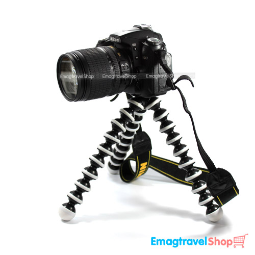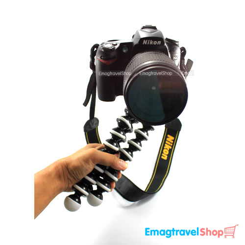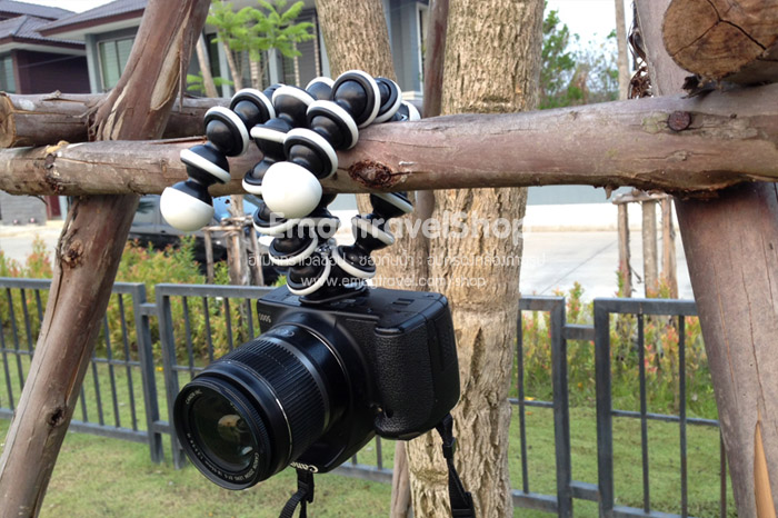 ขาตั้งกล้อง DSLR หนวดปลาหมึก (Octopus Tripod, Gorilla Tripod) บิดขาได้อิสระ ตั้งตรงได้ วางบนพื้นไม่เรียบได้ บิดงอเพื่อเกี่ยวได้ หรือ จะใช้เป็นไม้ selfie เพื่อถ่ายรูปตัวเองก็ได้ เหมาะสำหรับพกพาไปเที่ยวยังที่ต่างๆ ไม่เกะกะ